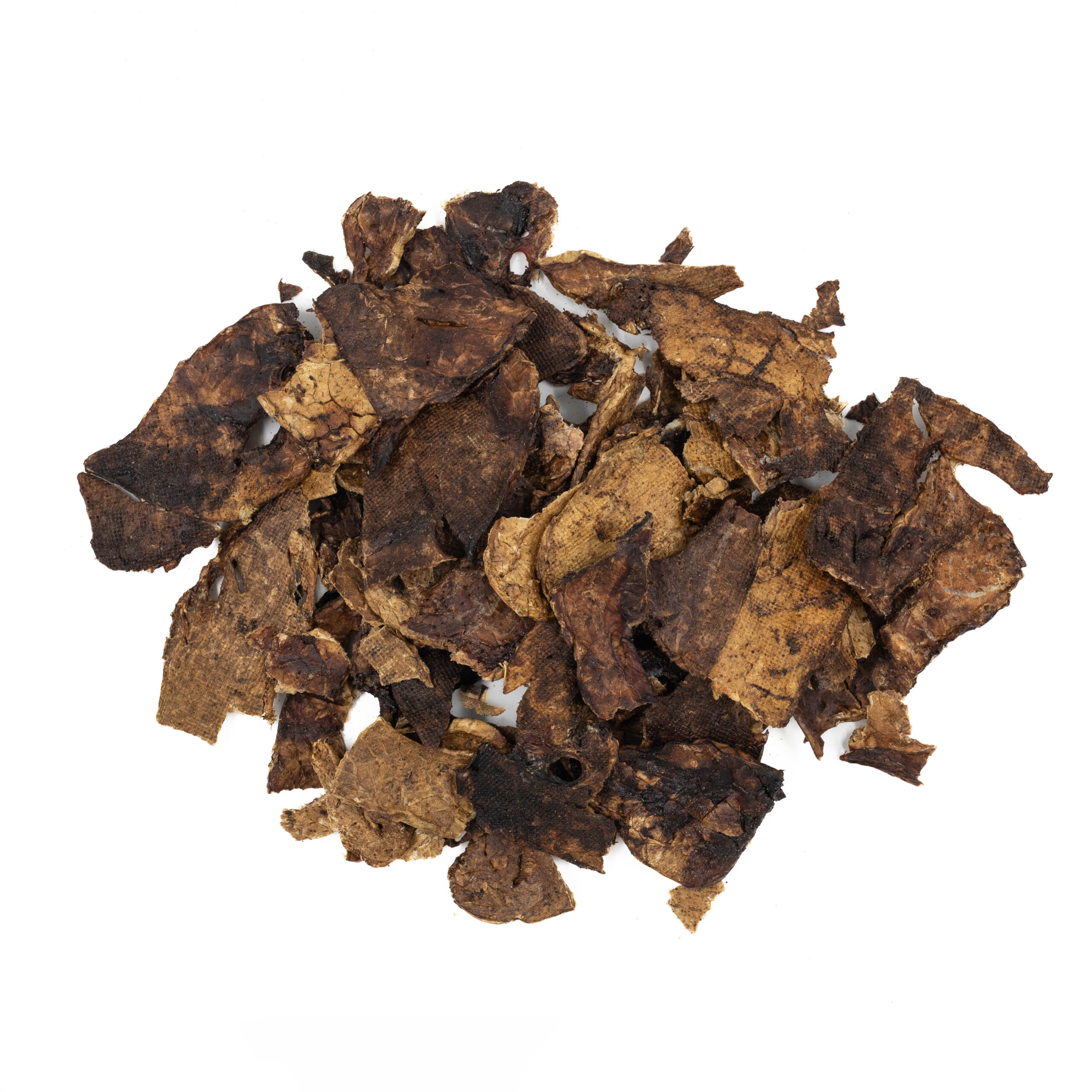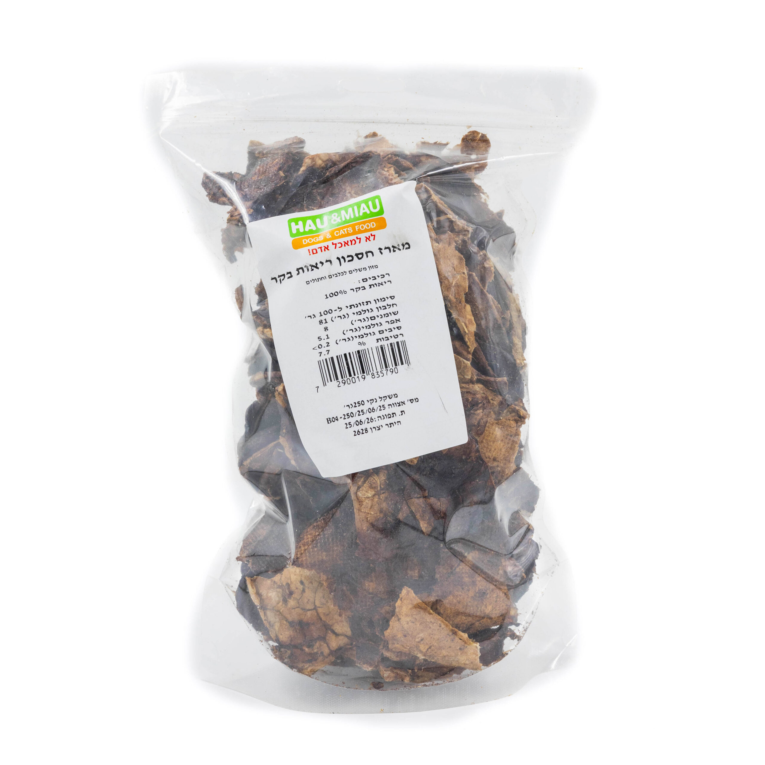 רכיבי החטיף: ריאות בקר, 100% חלקי בקר מיובש.