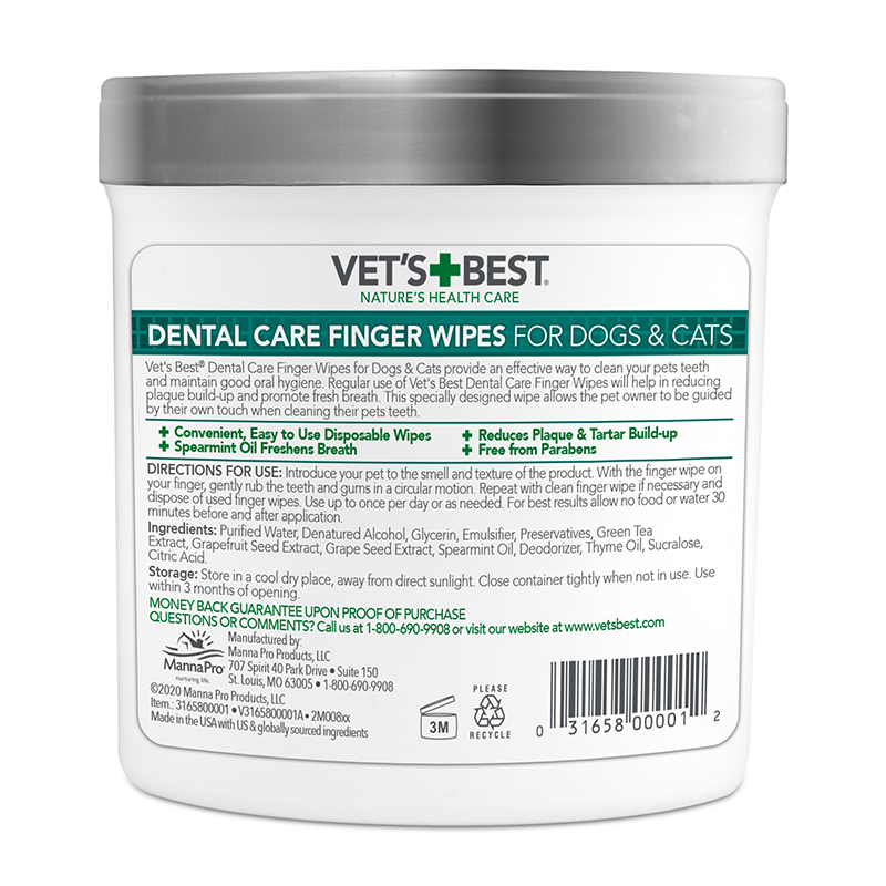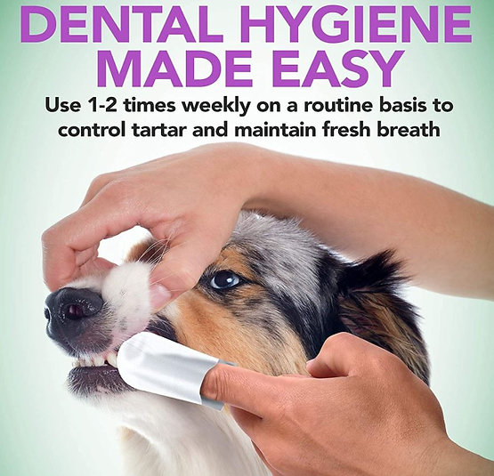 מגבונים בצורת אצבעון המיועדים לניקוי שיניים, חלל הפה והחניכיים של כלבים וחתולים.